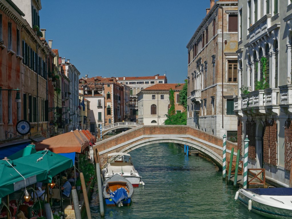 Den Rückweg zum Bahnhof haben wir in kleinen Gruppen und auf eigene Faust angetreten. Die Wegweiser der Stadt Venedig sind so gut, dass man sich nicht verirren kann. Parallel zum „Canal Grande“ ging es zurück. Aber nicht, ohne in eines der vielen Straßenrestaurants einzukehren. Das letzte Stück des Weges war eine Einkaufsstraße mit vielen Läden, die nicht nur Touristen bedienen wollen. Hier kaufen die Venezianer ein!