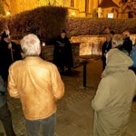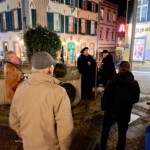 An verschieden Orten unserer Altstadt (u.a. Schandmal am Bürgerhaus) machten wir Halt und Oliver und Heinz –Werner gingen auf die historischen Belange ein. Dabei überzeugten unsere Nachtwächter durch ihr enormes Fachwissen über die mittelalterliche Geschichte Ratingens.