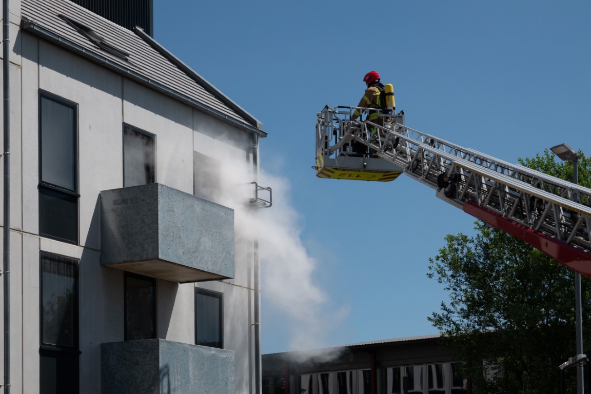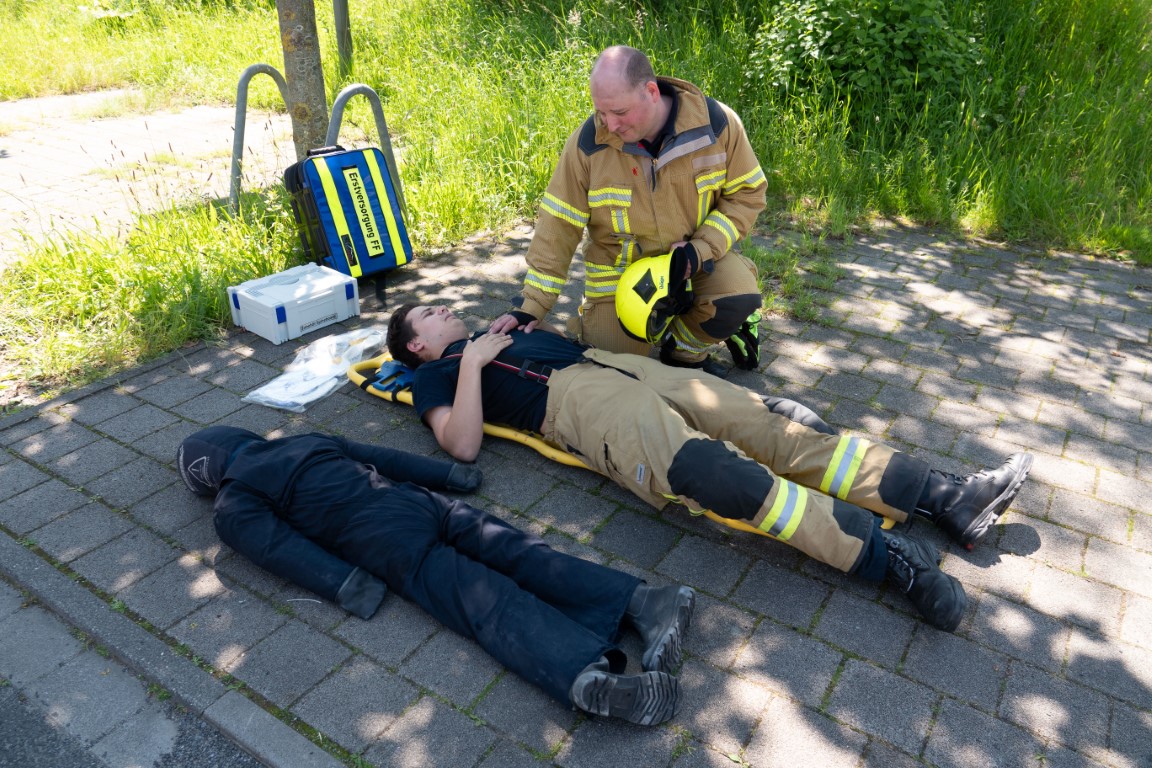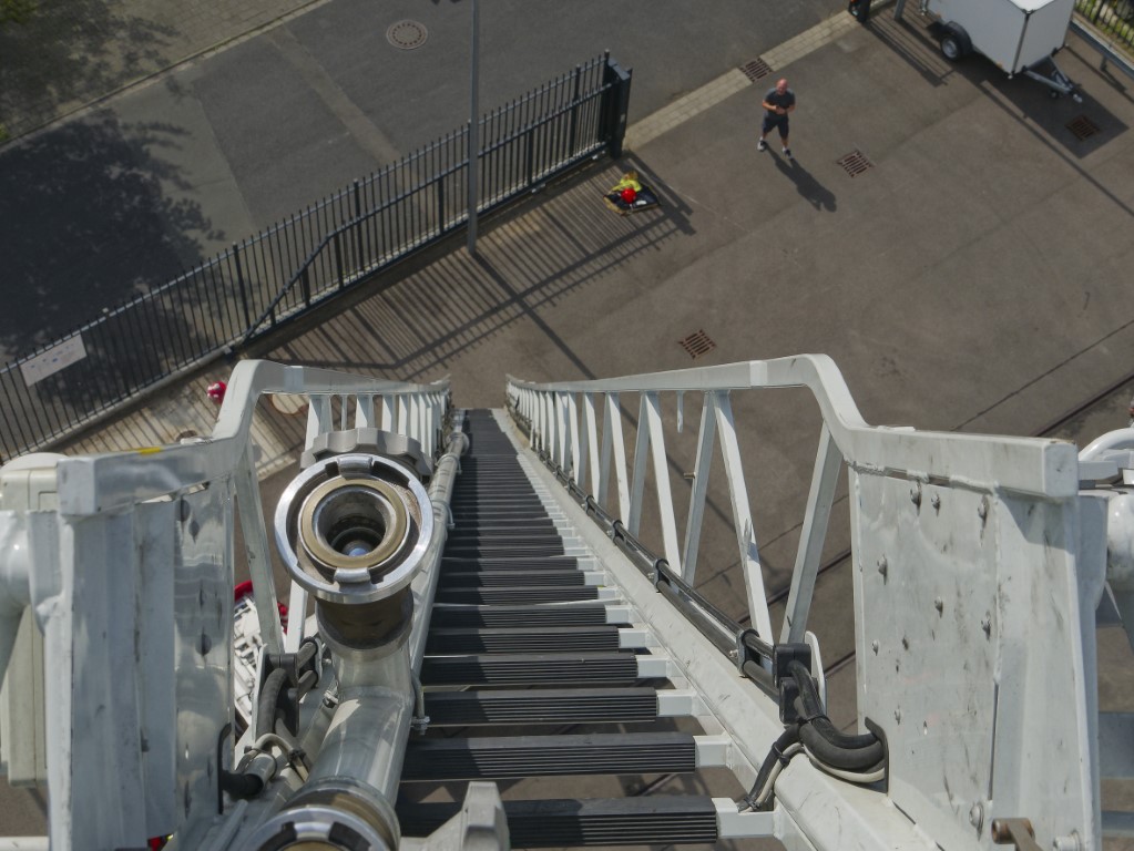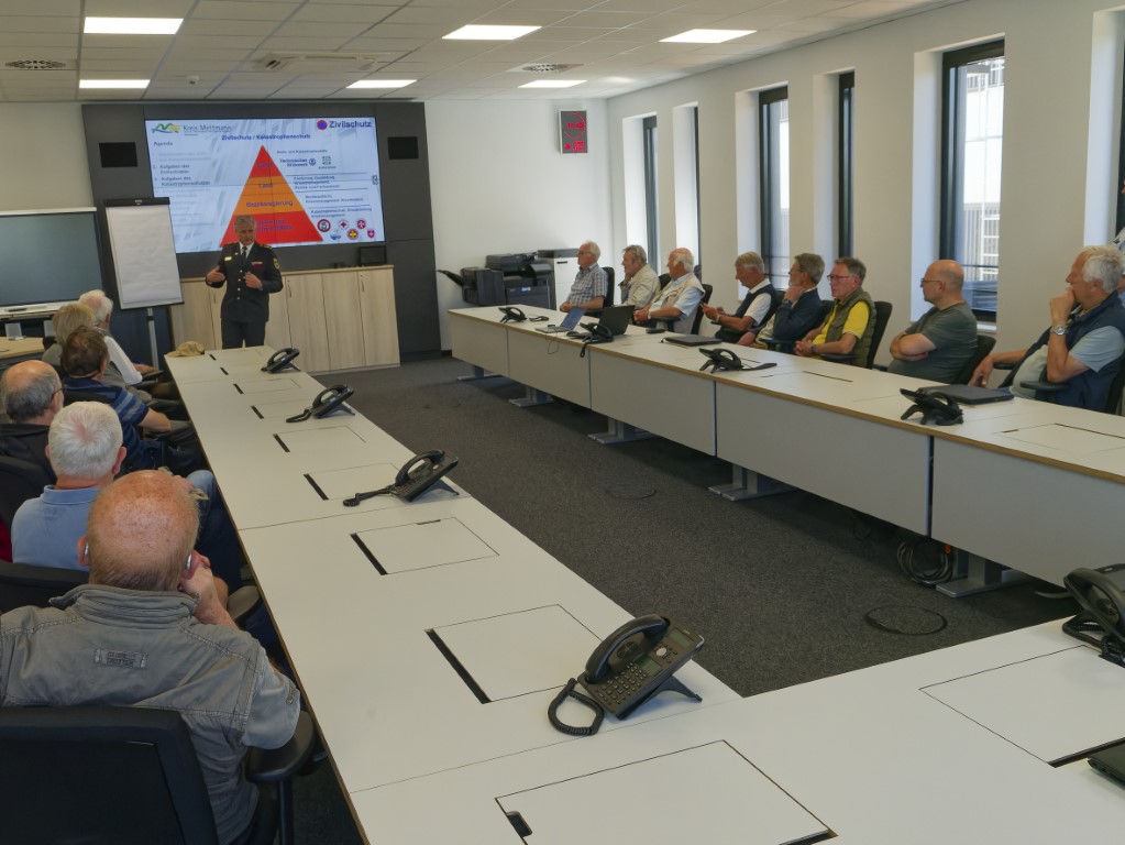 Rauch dringt aus dem Gebäude, ein Mann ruft im oberen Stockwerk um Hilfe, Sirenengeheul, die Freiwillige Feuerwehr rückt an. Heute ist es nur eine Übung, die die Ratinger Jonges im Rahmen ihres Besuches des Gefahrenabwehrzentrums in Mettmann miterleben!