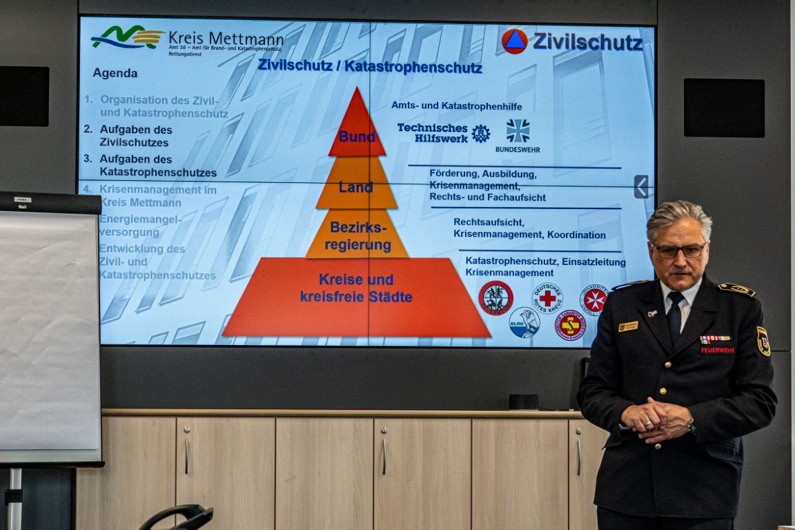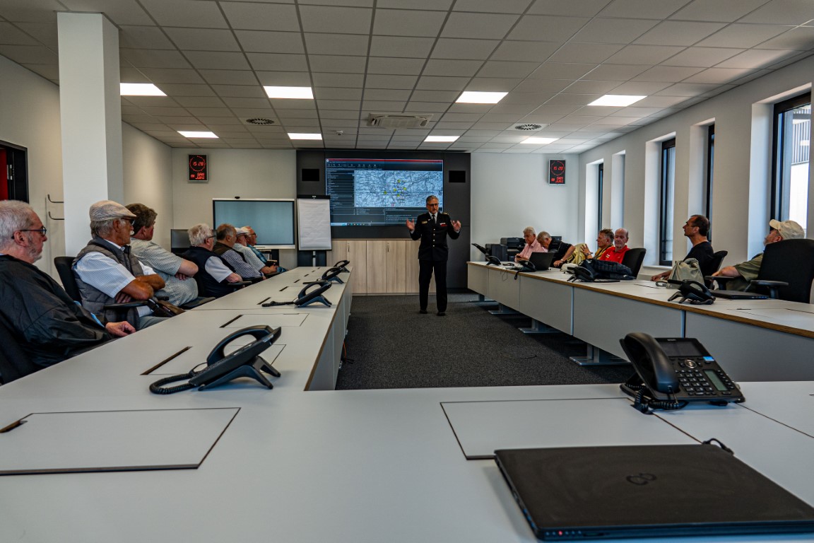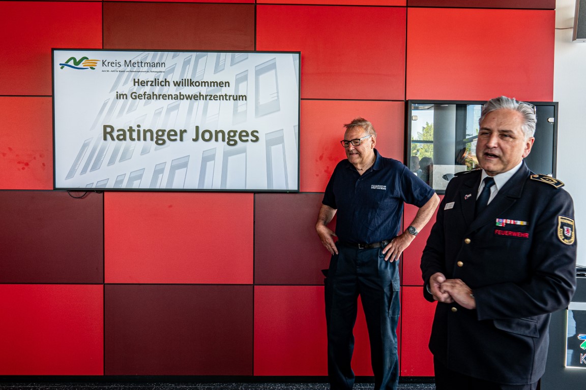 Das 2021 in Betrieb genommene Gefahrenabwehrzentrum (GAZ) des Kreises Mettmann gilt als eines der modernsten Einrichtungen im Land. Bei der Führung durch das Gebäude bezeichnete unser Jong, Kreisbrandmeister Torsten Schams, das GAZ als "Musterbeispiel für moderne und effiziente Gefahrenabwehr". Das sechs-geschossige Gebäude am Adalbert-Bach-Platz in Mettmann beherbergt die Rettungsleitstelle, ein Feuerwehrübungszentrum mit Übungshalle, eine Brand-simulationsanlage und Atemschutz-Übungsstrecke, die Kreis-Feuerwehrschule und das Amt für Brand- und Katastrophenschutz sowie den Rettungsdienst des Kreises. Zudem ist dort auch die Leitstelle der Kreispolizeibehörde angesiedelt.