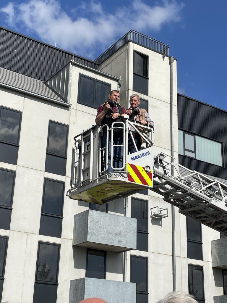 Rund 40 Ratinger Jonges erlebten unter der qualifizierten Begleitung von Torsten Schams, Lutz Pelzer, das „lebendige“ Denkmal und Uwe Schneiders, Ausbildungsleiter, einen informativen und spannungsreichen Nachmittag vor Ort. Im Anschluss an eine Rettungsübung der Freiwilligen Feuerwehr Ratingen klang der Nachmittag bei Grillwürstchen und kühlen Getränken aus.