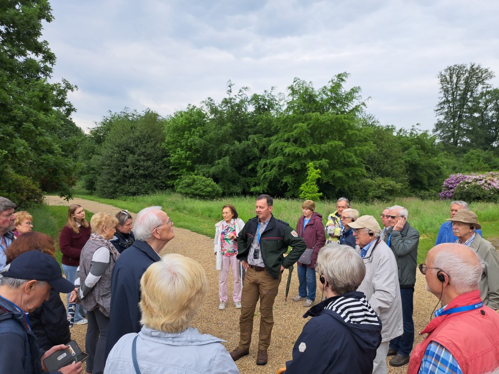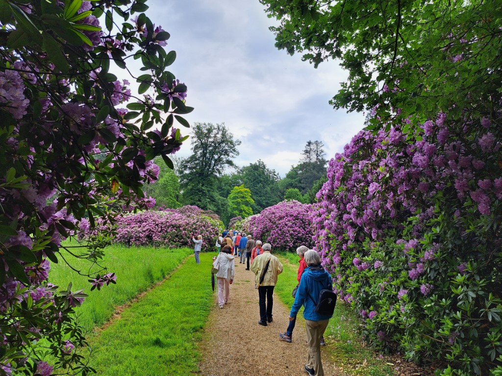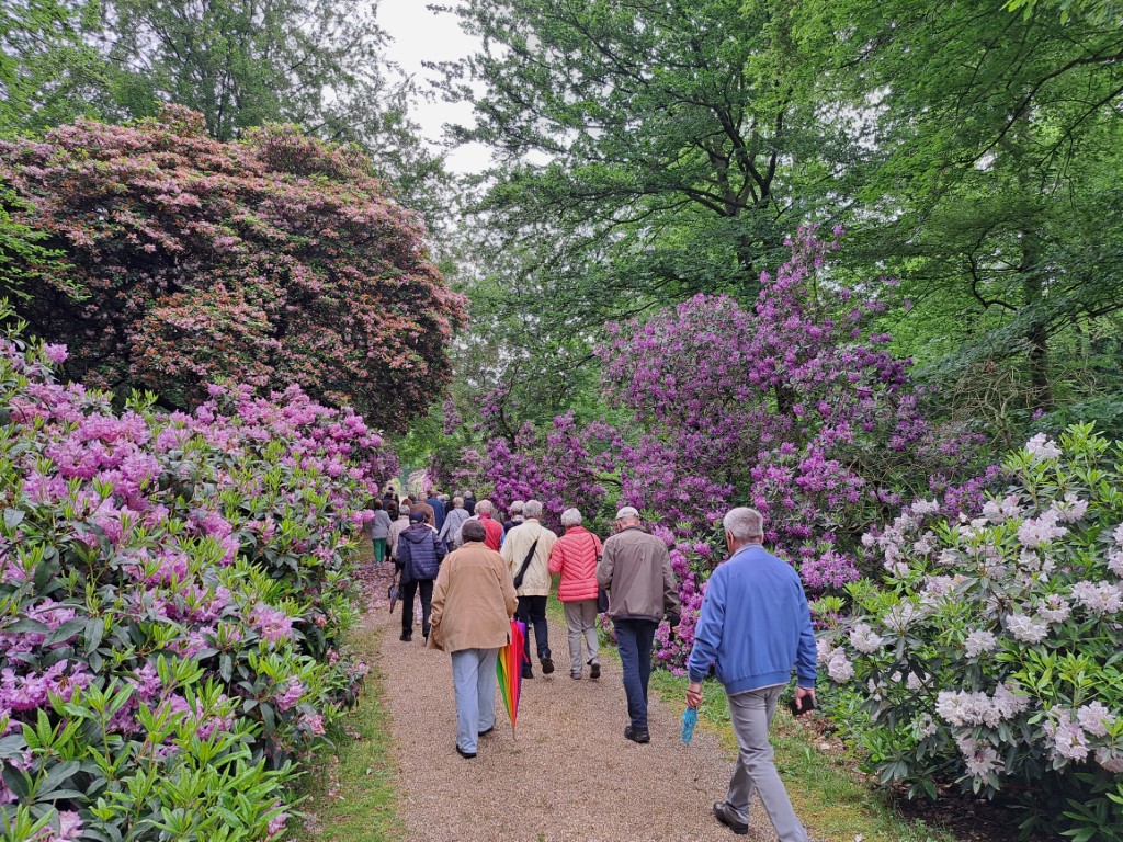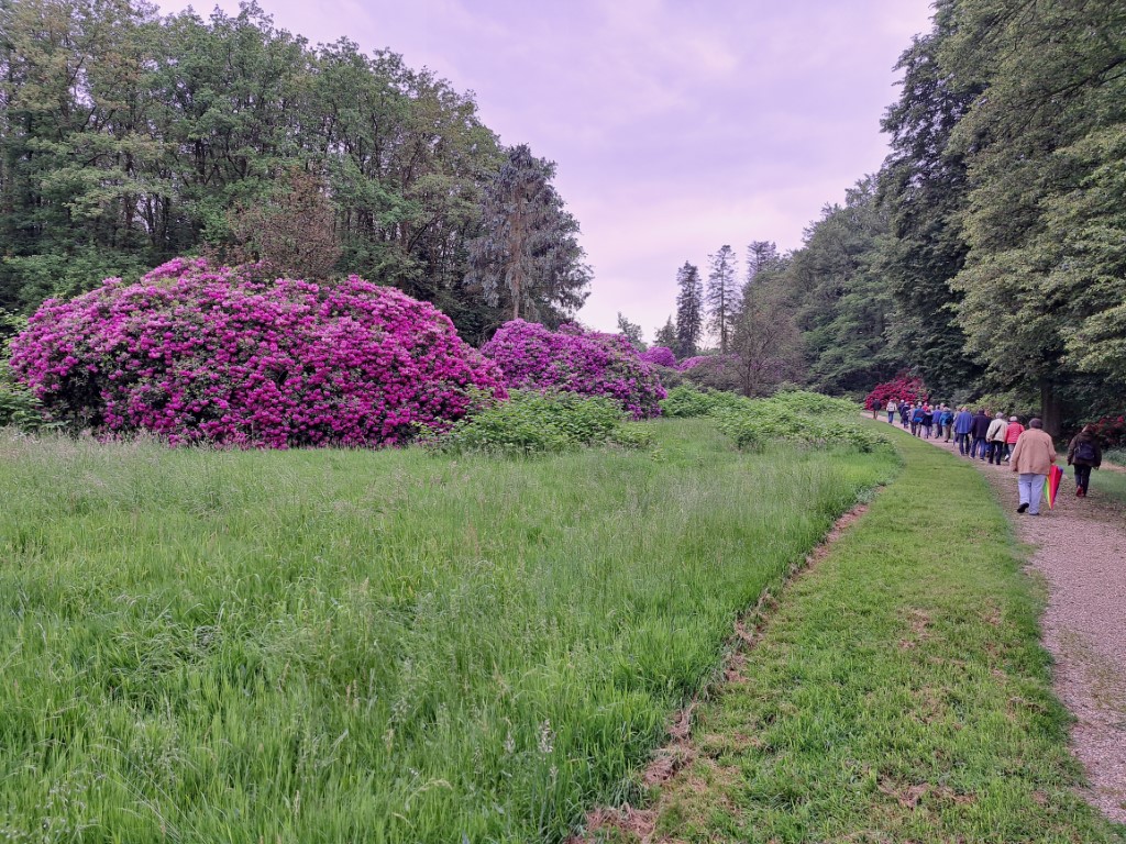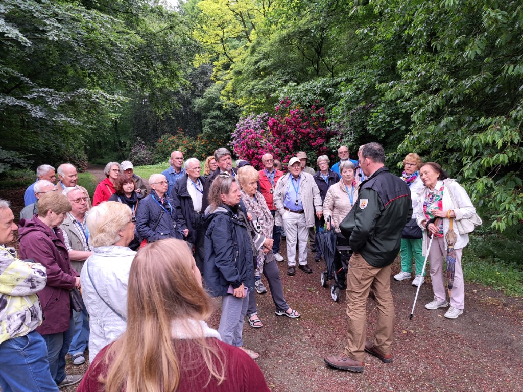 Da der ursprünglich geplante Termin der Führung durch den Tod der 96-jährigen Maria Theresia Reichsgräfin von Spee um einen Tag verschoben werden musste, hatten leider mehrere Teilnehmer absagen müssen. Trotzdem folgten letztlich 35 Teilnehmer der wirklich sehr informativen Führung durch Förster Klaus Weinem durch das zurzeit blühende Paradies, wobei in diesem Jahr - laut Weinem - die extreme Blütenpracht des Rhododendrons besonders und auch selten wäre.