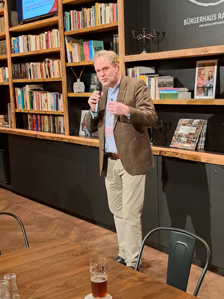 Im Rahmen der Vortragsreihe der Ratinger Jonges, hatte sich dieses mal Dirk Bongards, Geschäftsführer der Ratingen Marketing GmbH bereit erklärt, interressierten Bürgern und Bürgerinnen einen Vortrag mit dem Titel „Stadtmarketing für Ratingen - Gemeinsam zum attraktiven Stadtprofil beitragen“ zu halten.