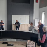 Beim anschließenden Rundgang durch die getrennten Bereiche der Polizei und der Feuerwehr erhielten wir jeweils sehr informative Erklärungen über den Ablauf in der Leitstelle im Falle eines ankommenden Notrufs aus dem gesamten Kreis, die bei einem Notfall wiederum die zuständigen Stationen/Wachen in den kreiszugehörigen Orten informieren und koordinieren. Im Fall einer Katastrophe treffen sich alle zuständigen Ämter inklusive Polizei und Feuerwehr im Raum des Gefahrenzentrums, um dort gemeinsam die notwendigen Maßnahmen abzustimmen.