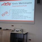 Herzlich wurden die 30 Teilnehmer und Teilnehmerinnen am Eingang des modernen Gebäudes am Adalbert-Bach-Platz 3 in Mettmann von Frau Dulischewski (Kriminalhauptkommissarin und Pressesprecherin der Polizei) und von Thorsten Schams (Kreisbrandmeister und Mitglied der Ratinger Jonges) begrüßt, in dem sich neben den beiden Leitstellen der Polizei und der Feuerwehr mit dem Rettungsdienst für den gesamten Kreis Mettmann auch die Feuerwehrschule Kreis Mettmann sowie das Amt für Brand- und Katastrophenschutz befinden und eine der modernsten Einrichtungen ihrer Art im Land ist.