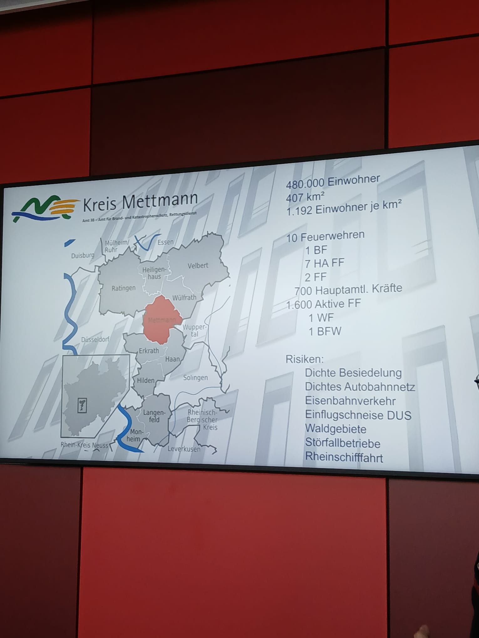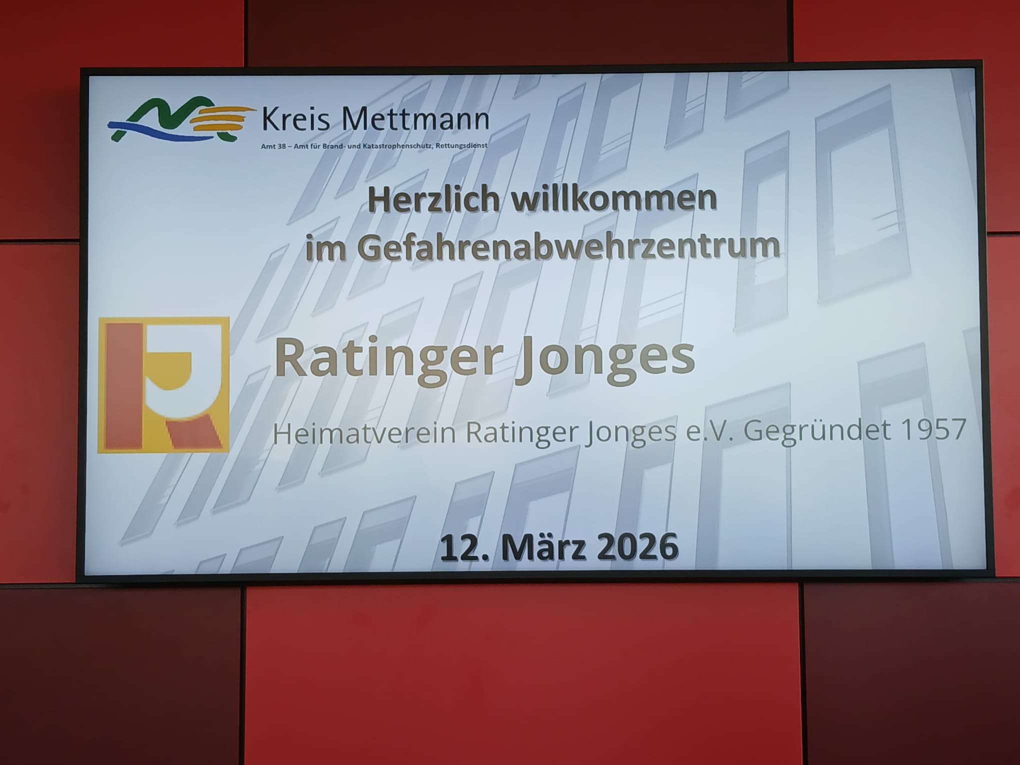 Herzlich wurden die 30 Teilnehmer und Teilnehmerinnen am Eingang des modernen Gebäudes am Adalbert-Bach-Platz 3 in Mettmann von Frau Dulischewski (Kriminalhauptkommissarin und Pressesprecherin der Polizei) und von Thorsten Schams (Kreisbrandmeister und Mitglied der Ratinger Jonges) begrüßt, in dem sich neben den beiden Leitstellen der Polizei und der Feuerwehr mit dem Rettungsdienst für den gesamten Kreis Mettmann auch die Feuerwehrschule Kreis Mettmann sowie das Amt für Brand- und Katastrophenschutz befinden und eine der modernsten Einrichtungen ihrer Art im Land ist.