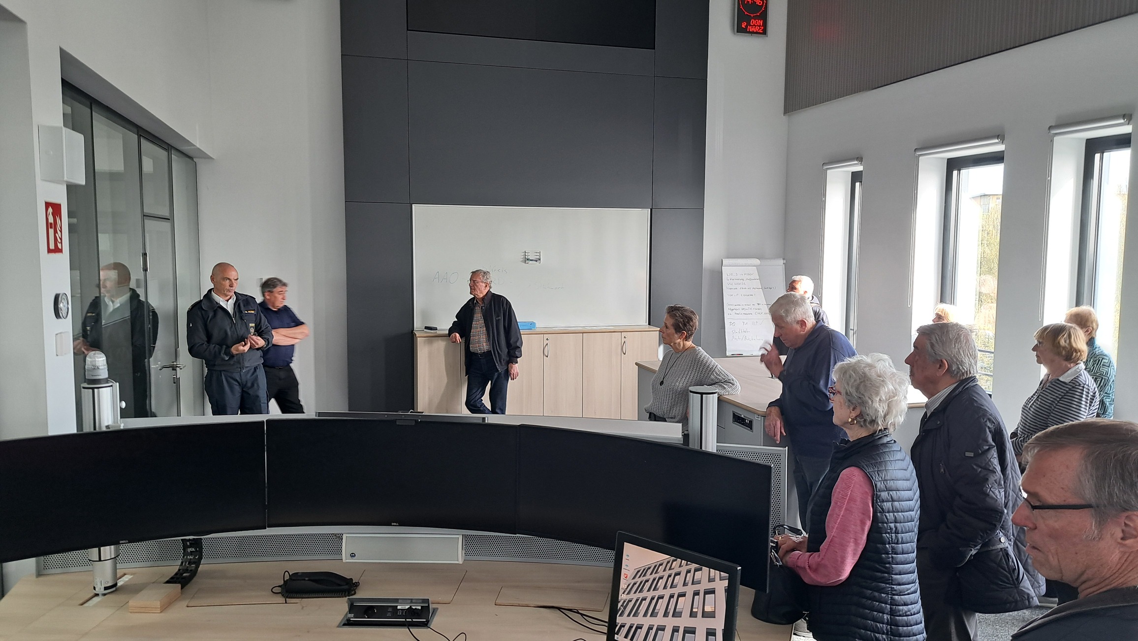 Beim anschließenden Rundgang durch die getrennten Bereiche der Polizei und der Feuerwehr erhielten wir jeweils sehr informative Erklärungen über den Ablauf in der Leitstelle im Falle eines ankommenden Notrufs aus dem gesamten Kreis, die bei einem Notfall wiederum die zuständigen Stationen/Wachen in den kreiszugehörigen Orten informieren und koordinieren. Im Fall einer Katastrophe treffen sich alle zuständigen Ämter inklusive Polizei und Feuerwehr im Raum des Gefahrenzentrums, um dort gemeinsam die notwendigen Maßnahmen abzustimmen.