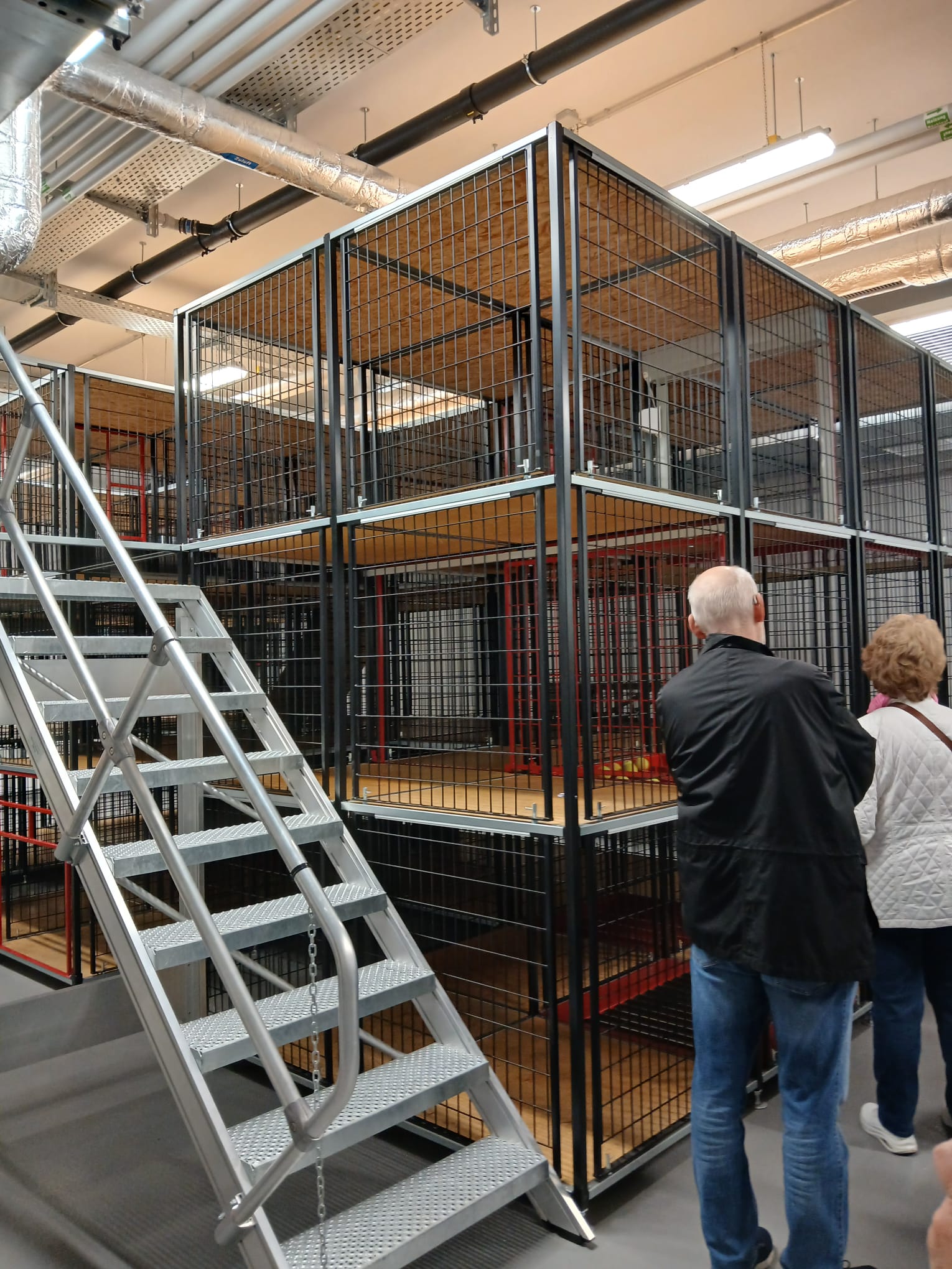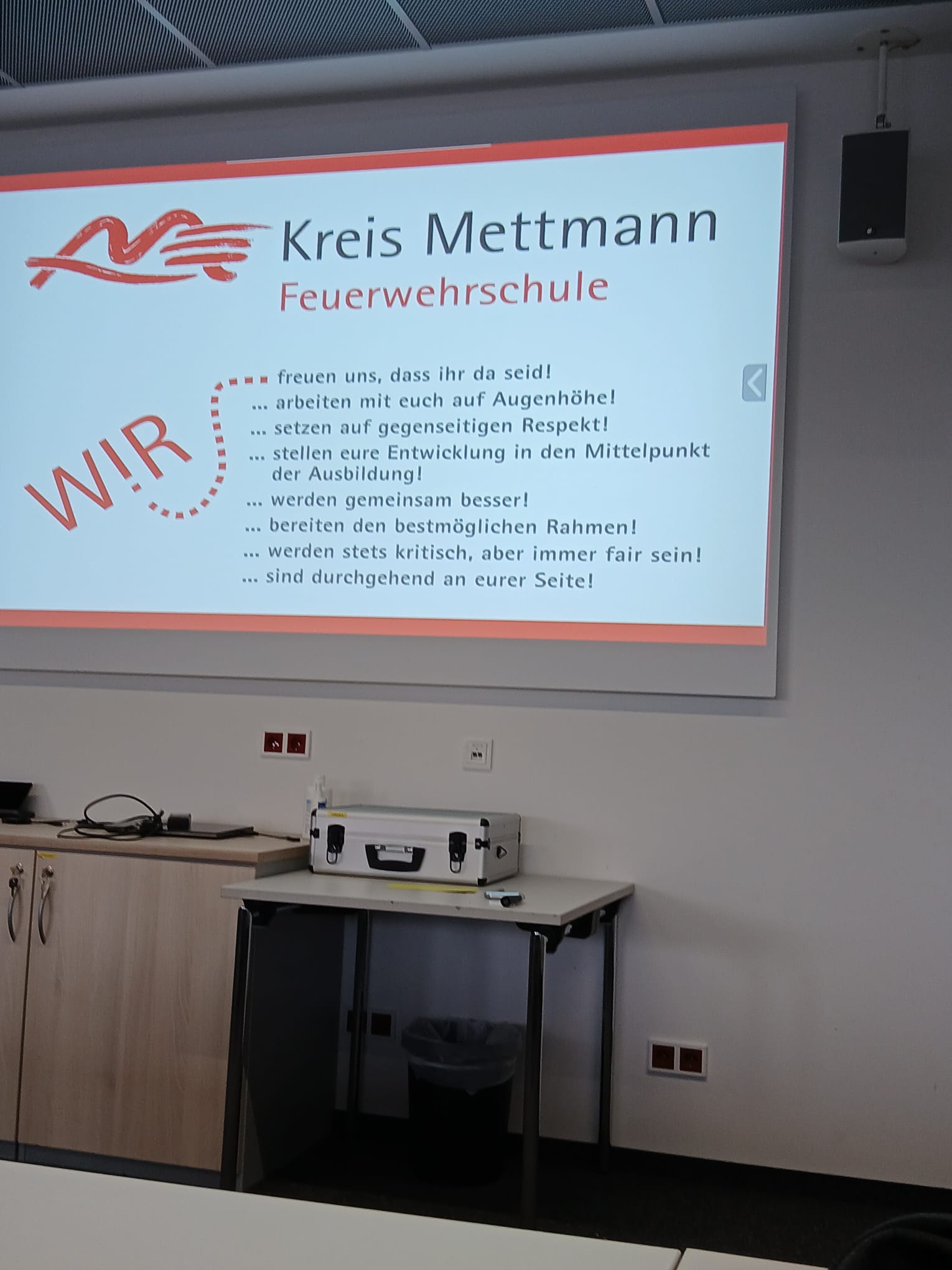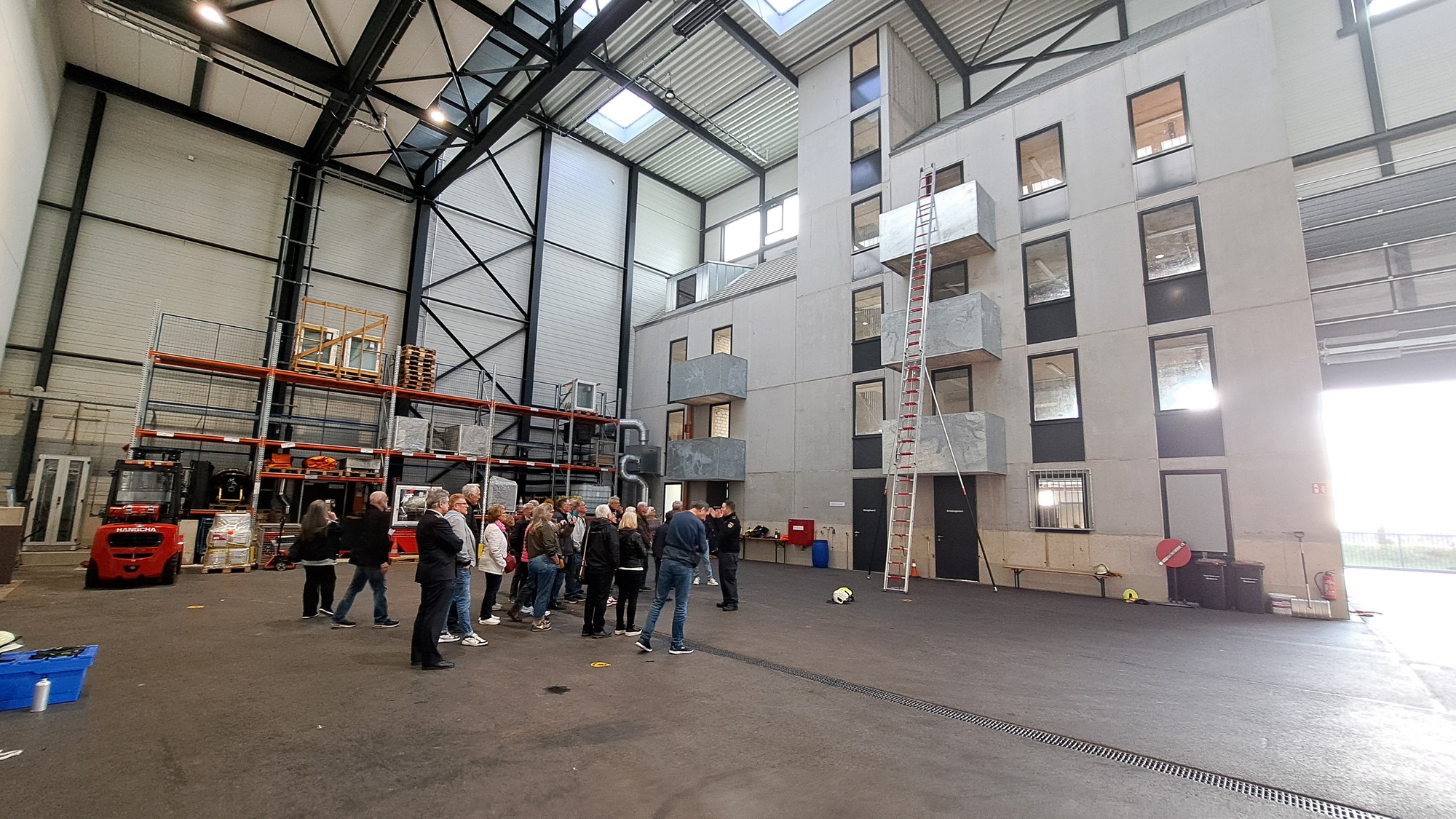 Neben den beiden Leitstellen ist in dem Gebäude auch die Feuerwehrschule des Kreises mit untergebracht, wo in der hauseigenen Ausbildungsanlage die Teilnehmenden den Umgang mit ihrer Schutzkleidung, dem Material für die Innenbrandbekämpfung und die notwendigen Techniken und Taktiken zur Brandbekämpfung und natürlich auch zur Menschenrettung aus verrauchten Bereichen erlernen, wie uns anschließend vom Schulleiter Markus Kühn erklärt und beim Besuch in der Atemschutz-Übungsstrecke und der Übungshalle mit realistisch nachgebauten Wohnungen gezeigt wurden.