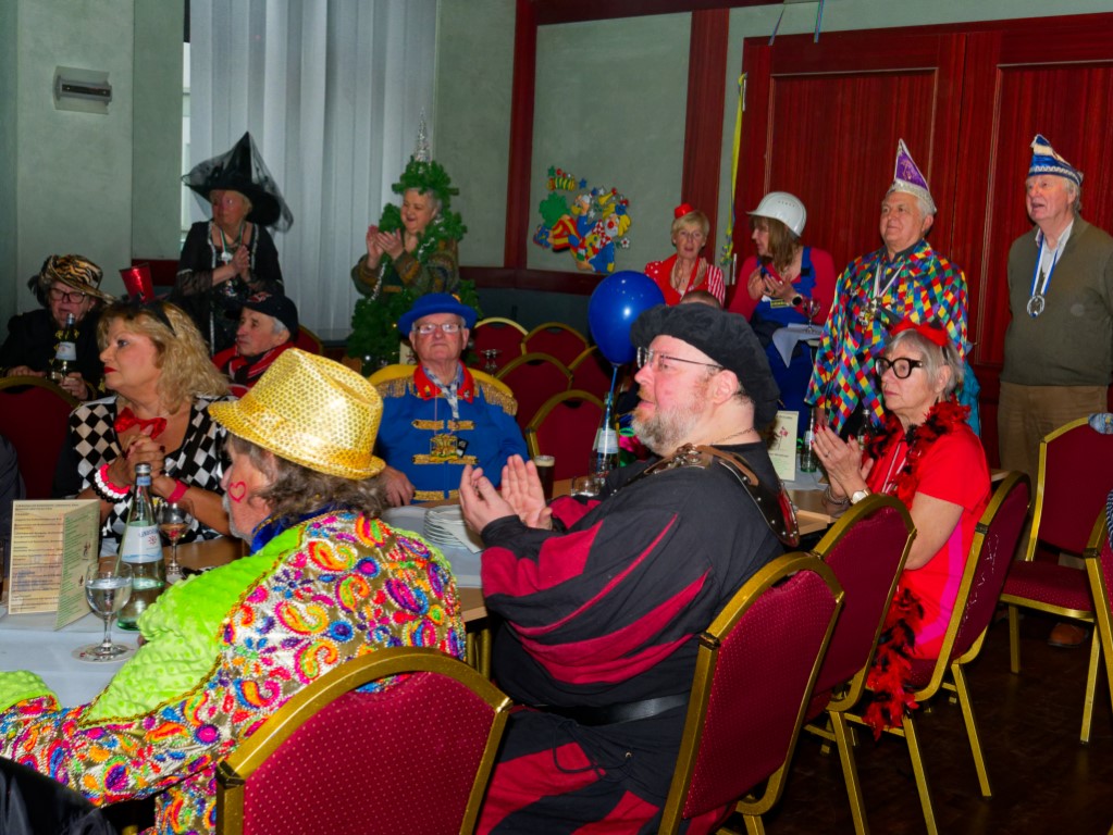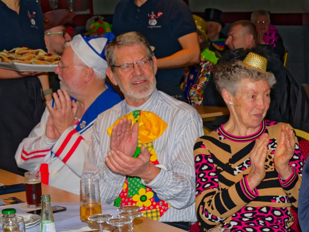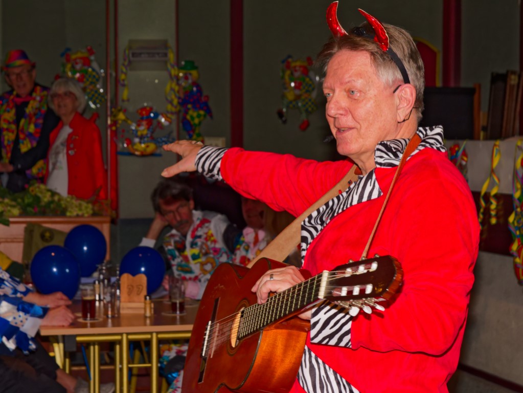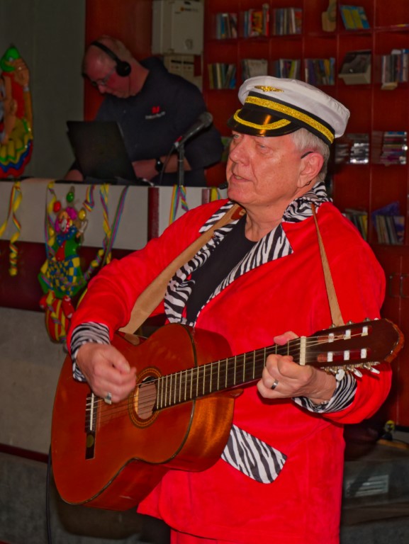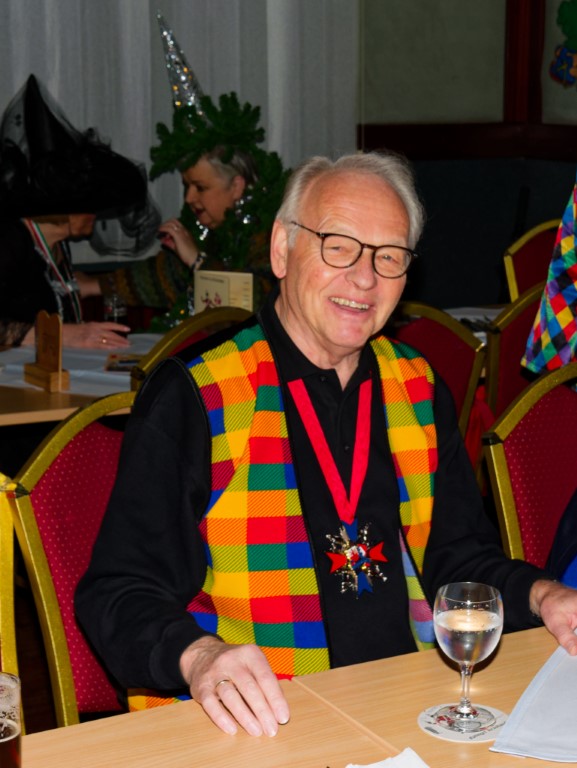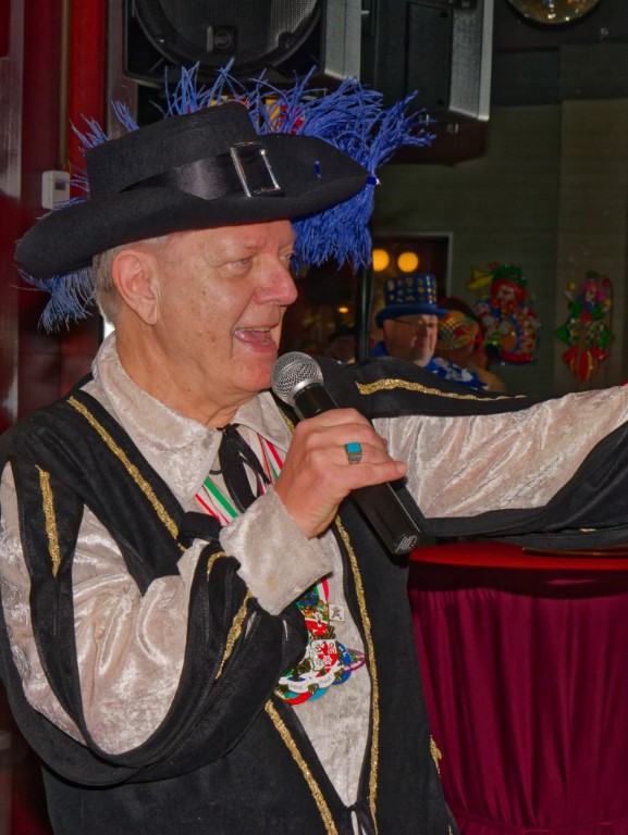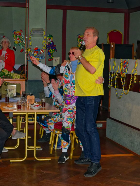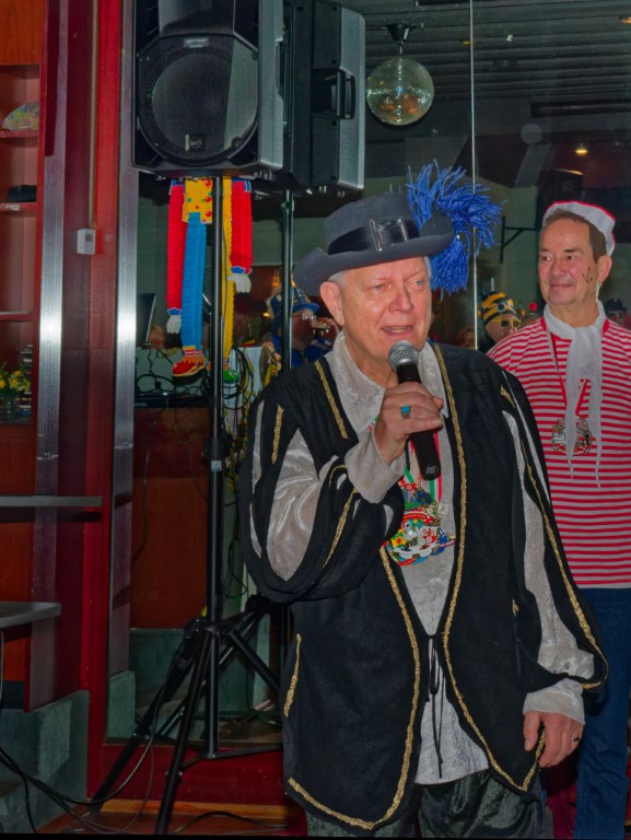 In diesem Jahr ließ es sich der Baas mal wieder nicht nehmen, etwas Eigenes vorzutragen. Mit der Auswahl alter Karnevalsschlager hatte er wohl den Nagel auf den Kopf getroffen, denn alle Jecken sangen den Refrain von zum Beispiel „Wer soll das bezahlen“ und „Wir kommen alle, alle in den Himmel“ voll Inbrunst mit. Eine anschließend durchgeführte Hutsammlung brachte ein sehr gutes Ergebnis ein, denn schließlich müssen wir die Künstler bezahlen.
