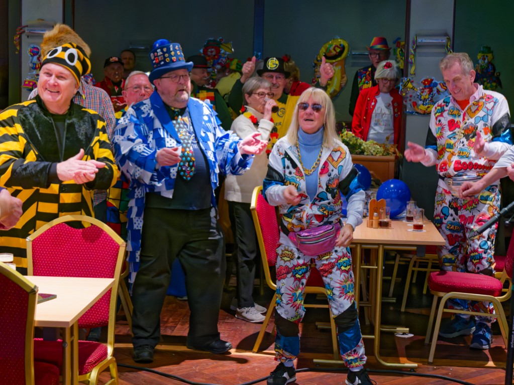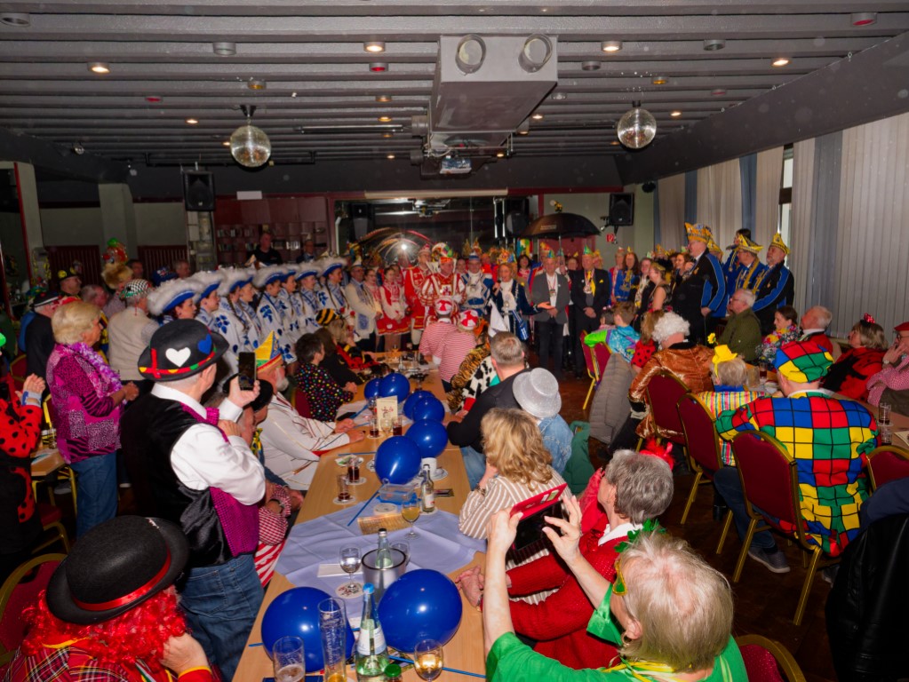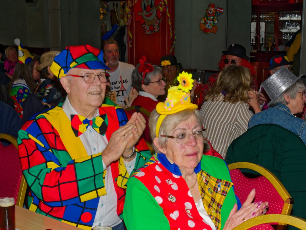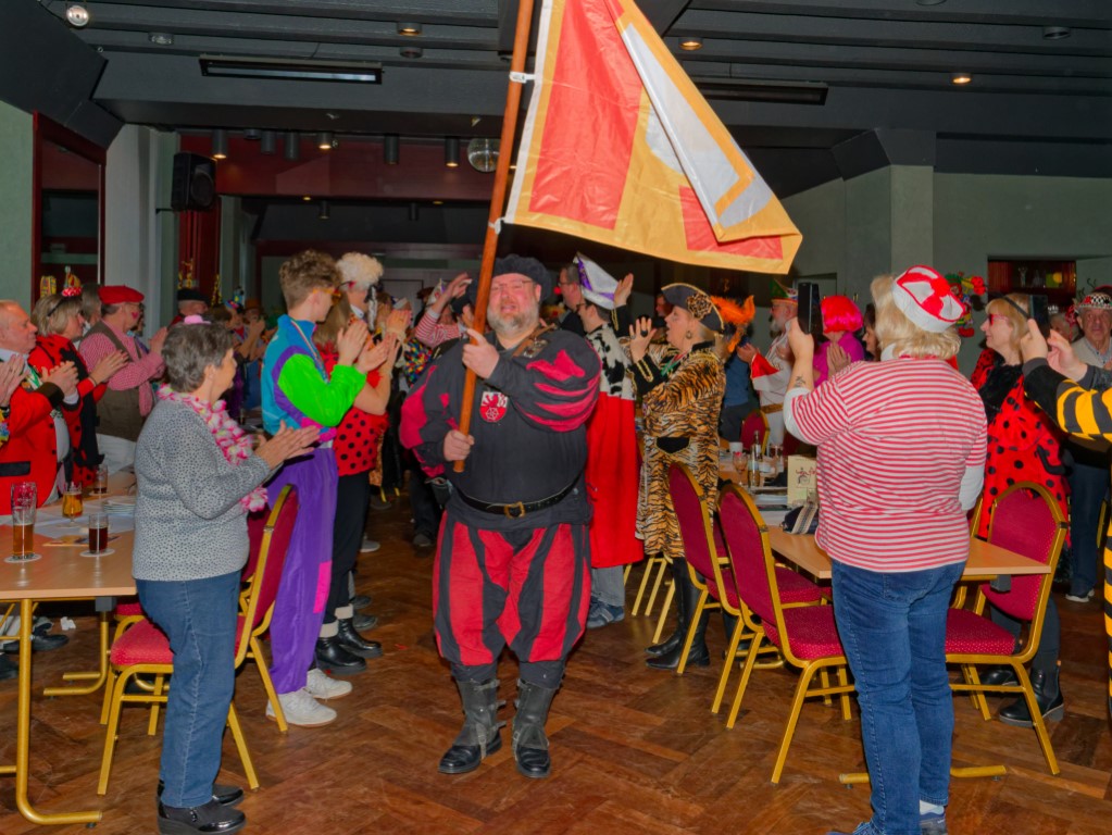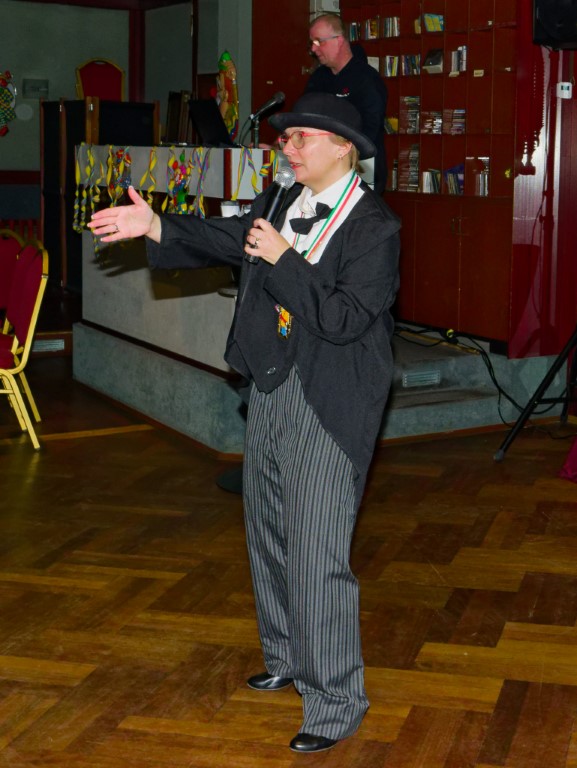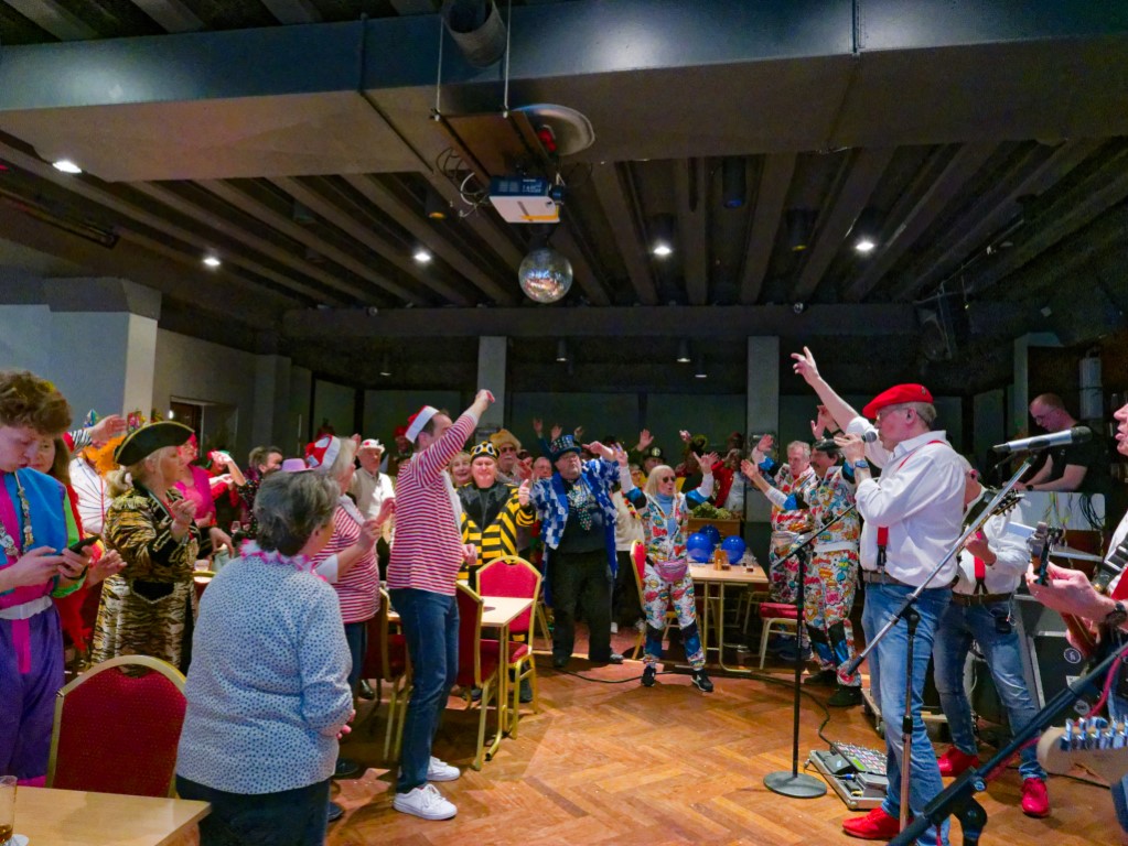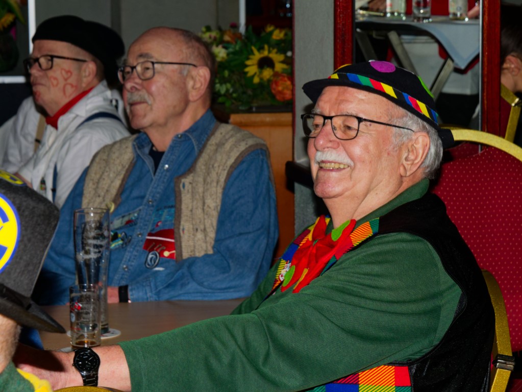 In diesem Jahr ließ es sich der Baas mal wieder nicht nehmen, etwas Eigenes vorzutragen. Mit der Auswahl alter Karnevalsschlager hatte er wohl den Nagel auf den Kopf getroffen, denn alle Jecken sangen den Refrain von zum Beispiel „Wer soll das bezahlen“ und „Wir kommen alle, alle in den Himmel“ voll Inbrunst mit. Eine anschließend durchgeführte Hutsammlung brachte ein sehr gutes Ergebnis ein, denn schließlich müssen wir die Künstler bezahlen.