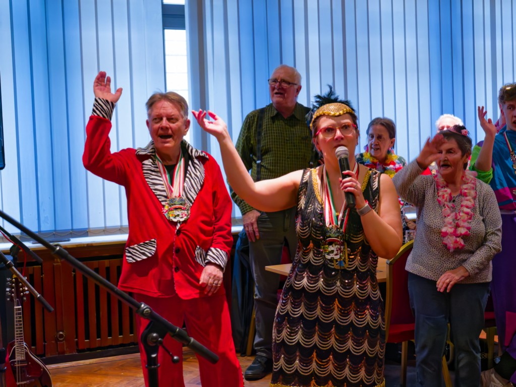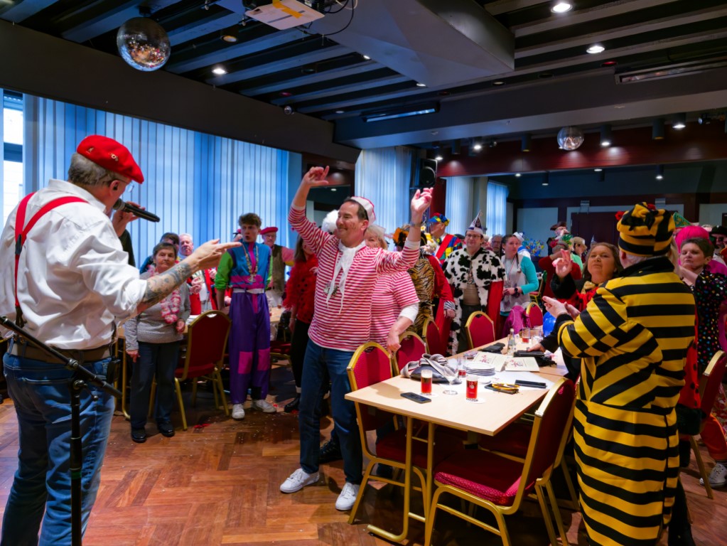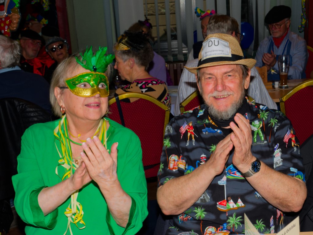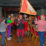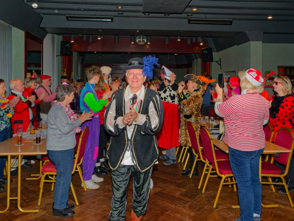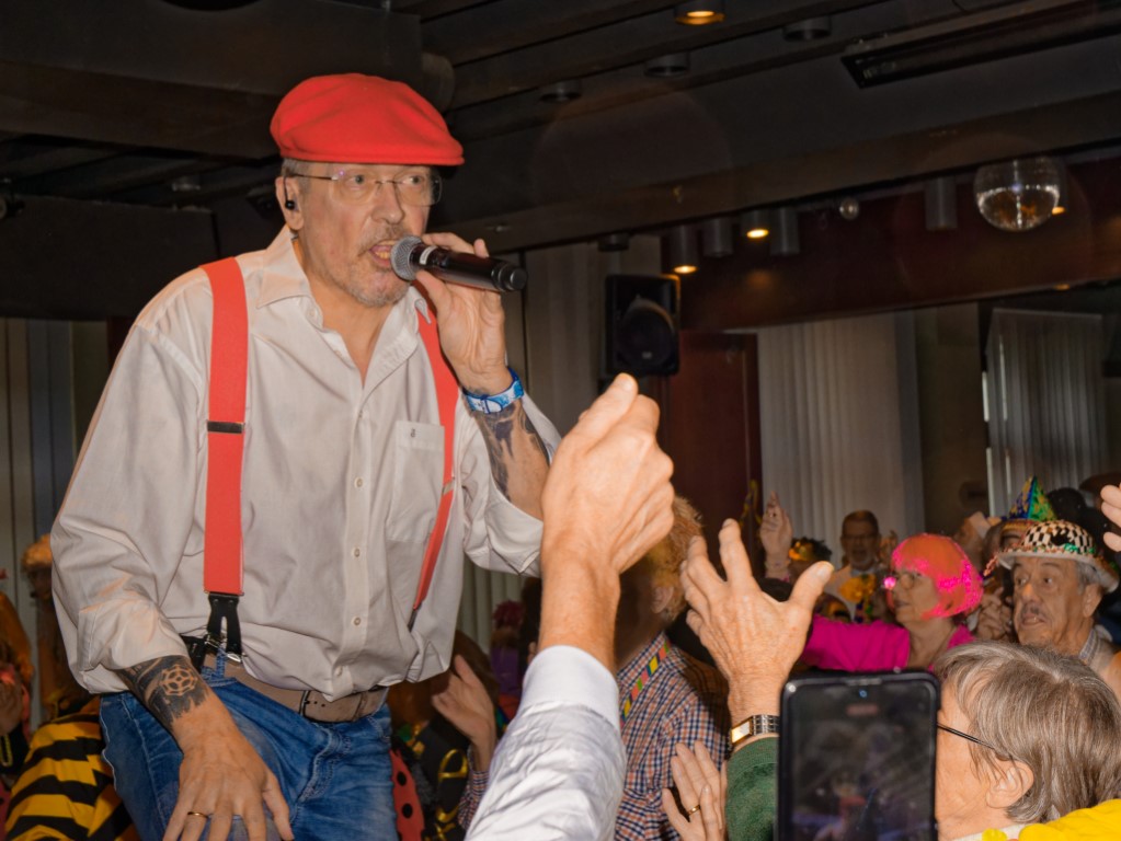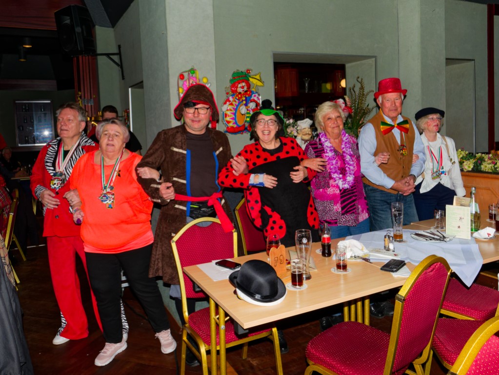 In diesem Jahr ließ es sich der Baas mal wieder nicht nehmen, etwas Eigenes vorzutragen. Mit der Auswahl alter Karnevalsschlager hatte er wohl den Nagel auf den Kopf getroffen, denn alle Jecken sangen den Refrain von zum Beispiel „Wer soll das bezahlen“ und „Wir kommen alle, alle in den Himmel“ voll Inbrunst mit. Eine anschließend durchgeführte Hutsammlung brachte ein sehr gutes Ergebnis ein, denn schließlich müssen wir die Künstler bezahlen.