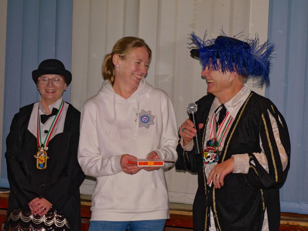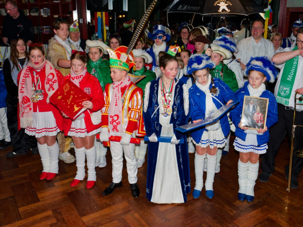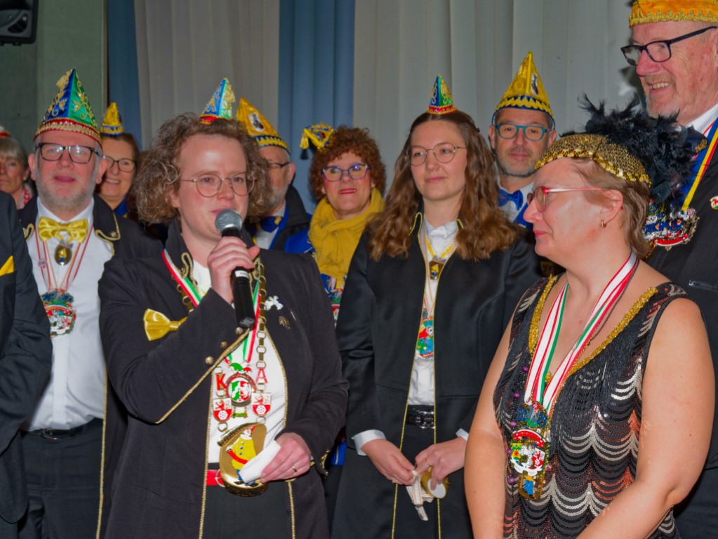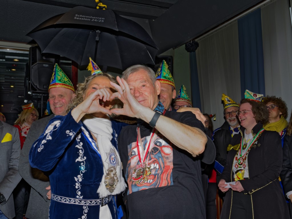 Der Besuch des Ratinger Prinzenpaares Frank und Sabine mischte den Saal nochmal richtig auf. Zu bemerken ist, dass Prinz Frank seit kurzem Mitglied der Ratinger Jonges ist. Es wurden sowohl Orden vom Prinzenpaar, dem Karnevalsausschuss und den Schirmherren an im Saal Anwesende aufgrund unterschiedlicher Verdienste verteilt, aber auch der berühmte Jonges-Orden an den Prinzen ausgegeben.