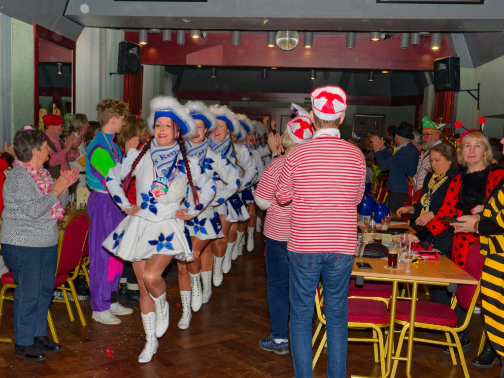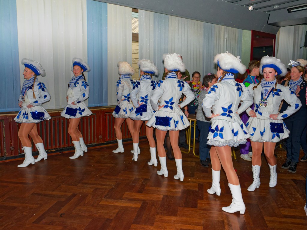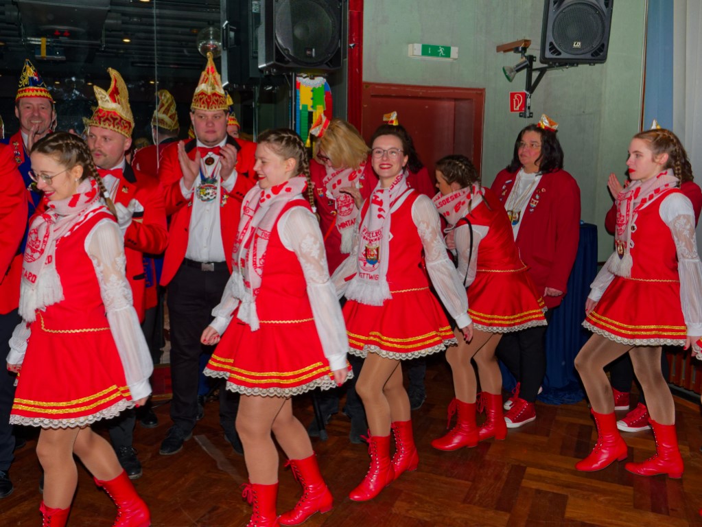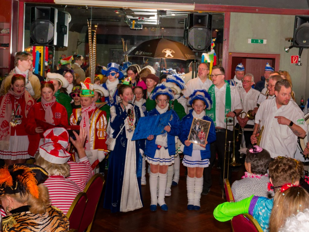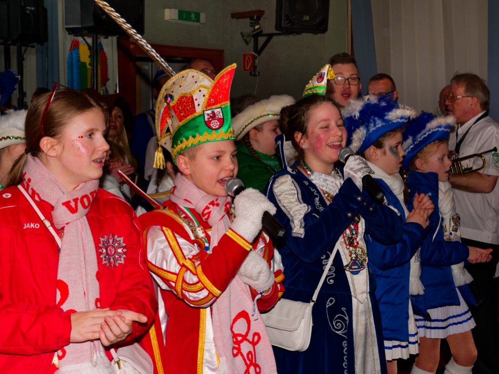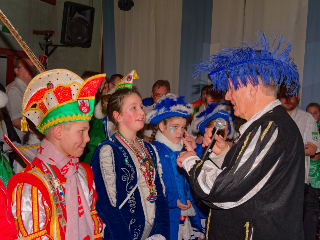 Nach dem Auftritt der Pagetten Tanzgruppe von Blau-Weiß, die nicht minder laut wie die Junioren vorher beklatscht wurden, nahm das Kinderprinzenpaar Luca und Ronja den Saal ein und animierte auch die unfähigsten Jecken zum Mitmachen beim Tanzen.